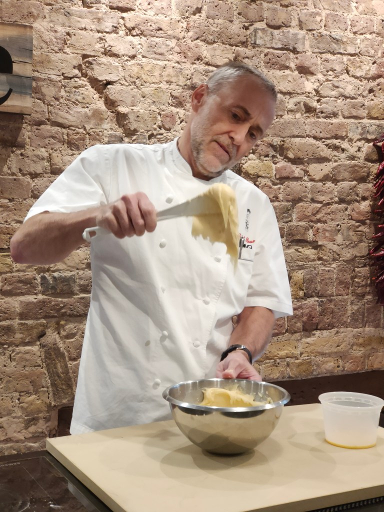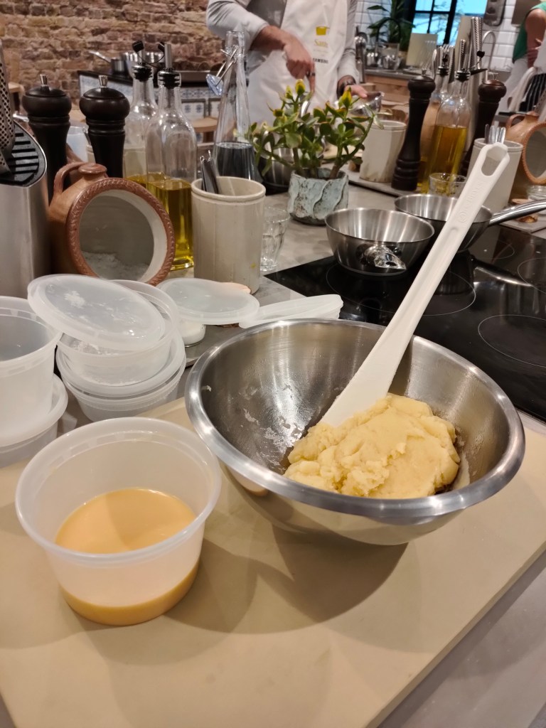 With fluid, deliberate movements, he set to work. From teasing the scallop open and removing its meat with surgical precision, to mixing up the deliciously delicate choux pastry before piping it out on a tray, it was a real privilege to see a master of their craft work their magic in person.