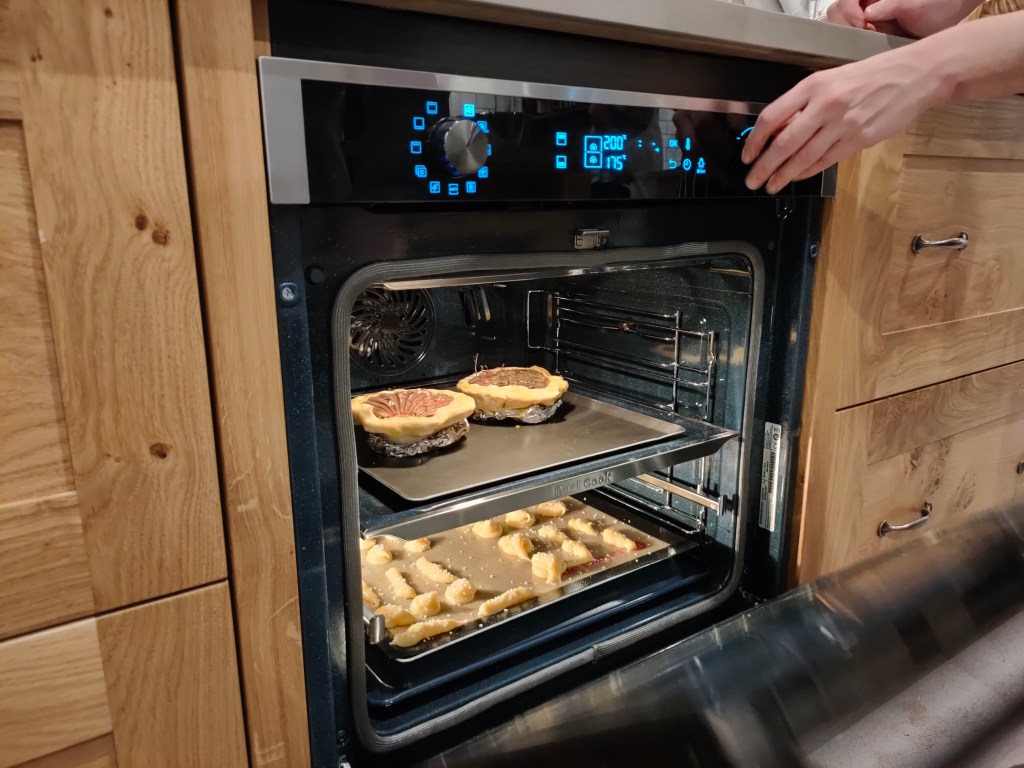 On the oven front, things are a little more interesting. The Sauce kitchen was kitted out with Samsung’s Dual Cook Flex ovens – normal ovens which are horizontally split in half, allowing you to set two different temperatures for the top and bottom – a godsend for multi-dish cooking.